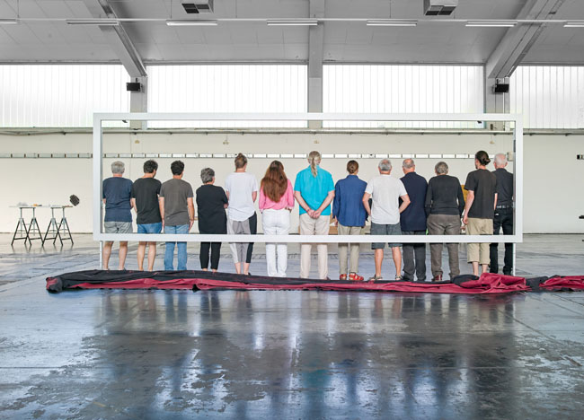 Als Fotograf taucht er in Licht und Schatten ein, um dem Augenblick Bedeutung zu verleihen. Hier wird ein Gruppenfoto mit allen Künstlern zum Erinnerungsbild.