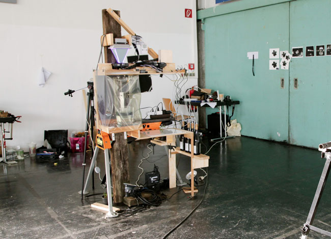 Die Arbeiten sind skulpturale Protokolle eines 3D-Drucks. Eine Pflanze wird in regelmäßigen kurzen Abschnitten analog fotografiert. Das Foto wird durch eine zweite Fotokamera und mittels UVLicht auf das mit Harz und Salzwasser gefüllte Gefäß übertragen. Durch die Bestrahlung mit dem Pflanzenfoto wächst eine Harzskulptur in dem Gefäß heran. Die entstandene Skulptur ist somit das Protokoll aller äußeren Einflüsse auf das Produkt und reagiert unmittelbar auf seine Umgebung. Bei genauem Betrachten lassen sich zum Beispiel Temperaturschwankungen während der Produktionszeit erkennen. Vincent Böhm und Elijas Wallner zeigen durch ihre Protokolle, wie sensibel die Natur auf Veränderungen reagiert.