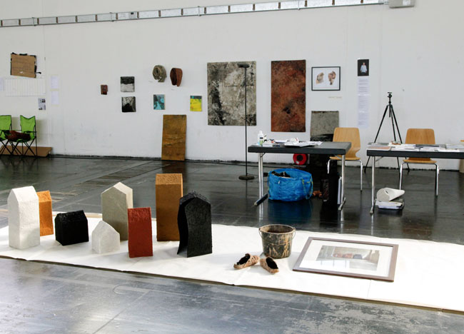 ERDORT Verschiedenfarbige Erden unterschiedlicher Herkunft in zahlreichen Orten und Ländern gesucht, mitgenommen, verarbeitet wie die Eindrücke, die sich ins Gedächtnis schreiben.